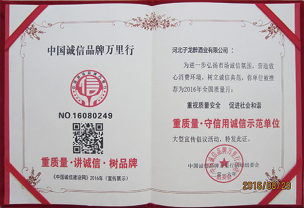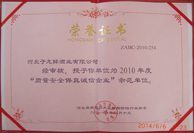 2010年评为“质量安全保真诚信企业”示范单位、同年被授予“质量安全保真诚信企业”;