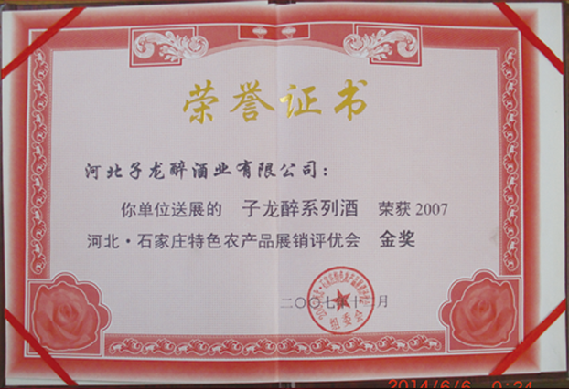2007年在河北特色农产品展销评优会上,子龙醉酒荣获“金奖”